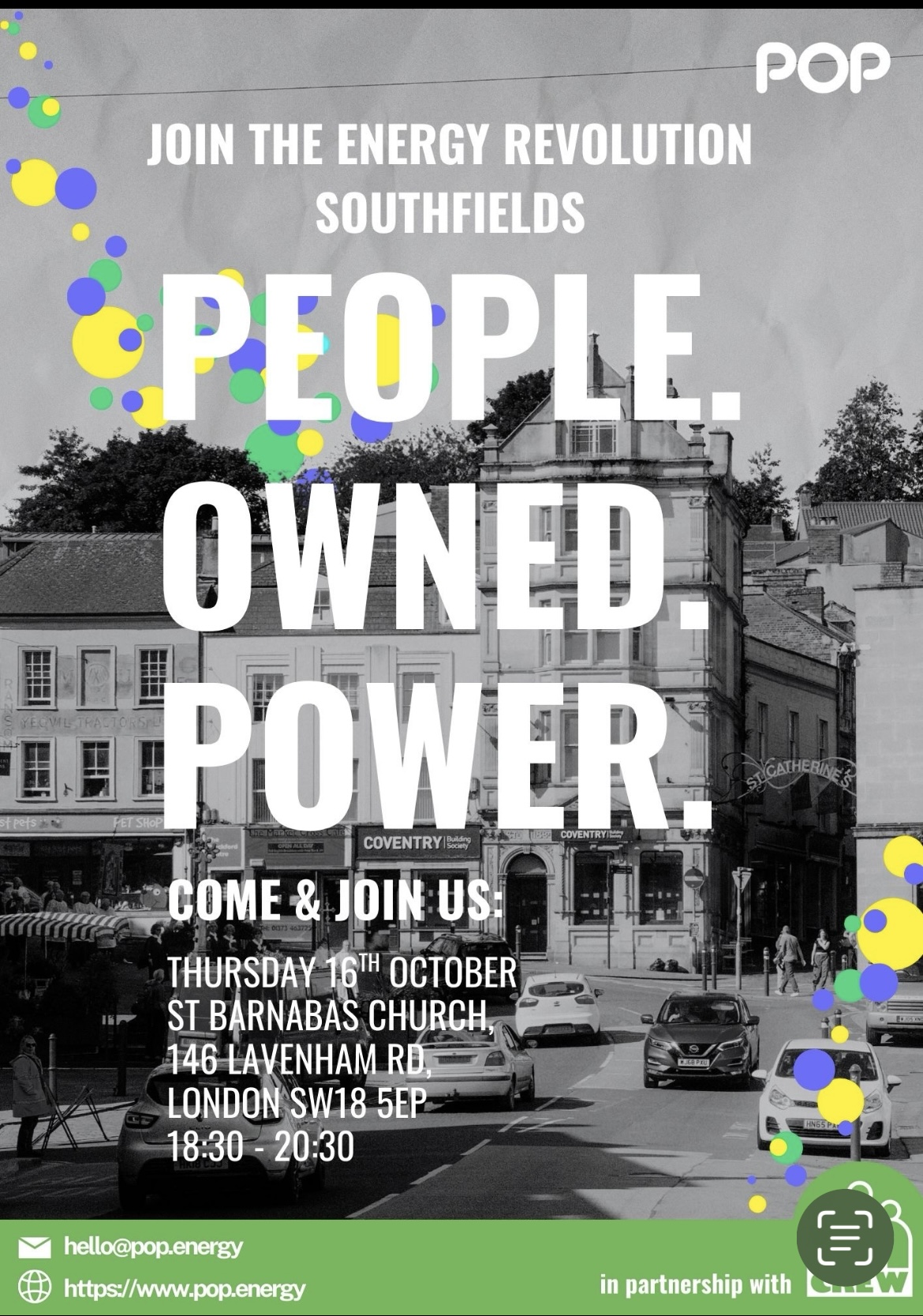 People. Owned. Power (POP): Join the Energy Revolution Southfields – Thursday 16 October, 6.30 to 8.30pm St Barnabas Church Link to poster